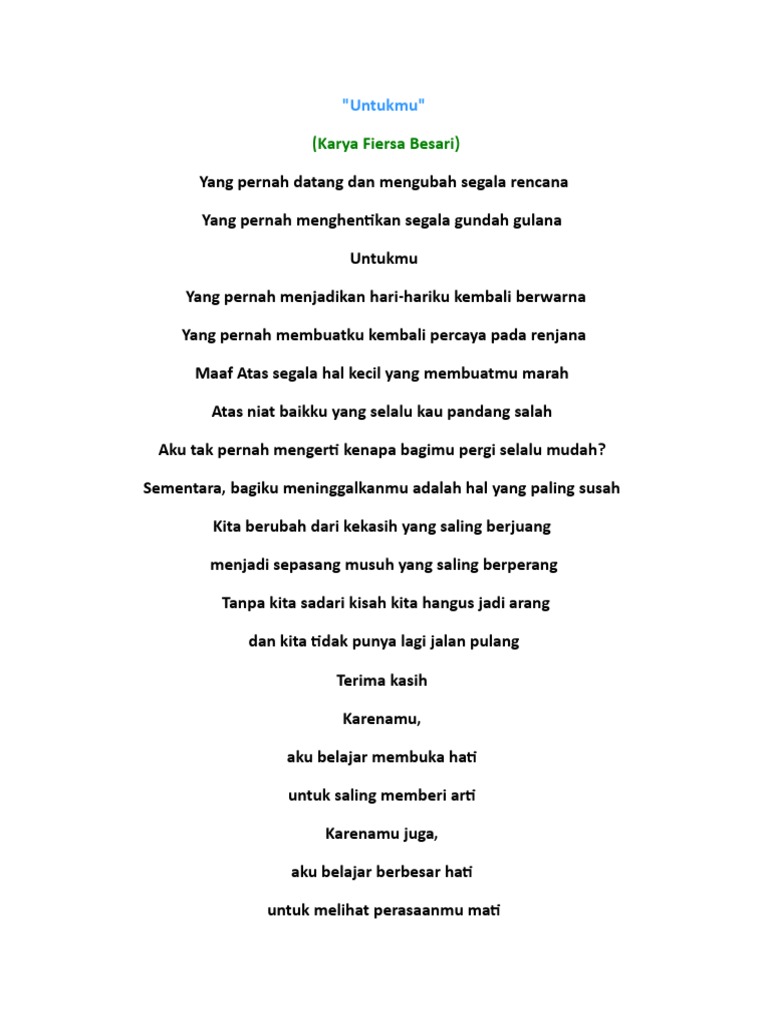 Aku senang wangimu Yang tertinggal Di sela kalimat manis yang berpenggal-penggal Di antara reruntuhan k Rabu 14 Juli 2021 1920 Penulis. Click button below and download or listen to the song Kumpulan Puisi Fiersa Basari on the next page. Berbincanglah sampai salah satu kita tertidur.