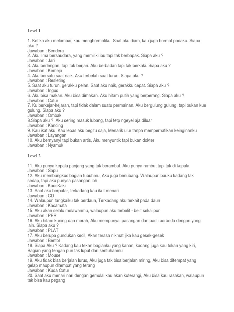 Kau genggam aku terkadang kau tak mau jauh dariku di saat kamu pergi aku menyertaimu dunia tampak sepi tanpa kehadiranku saat ku berteriak kau langsung mencariku. Kunci Jawaban Tebak Siapa Aku Level 1. Tolong jangan hujat aku karena ini juga bukan keinginanku aku sudah melawan tapi badan ku kaku tidak bisa digerakkan.