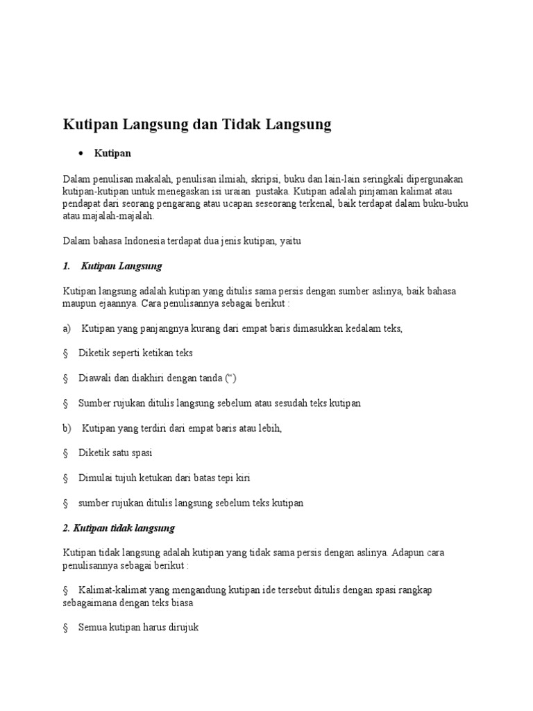 Contoh Kutipan Langsung Dan Tidak Langsung