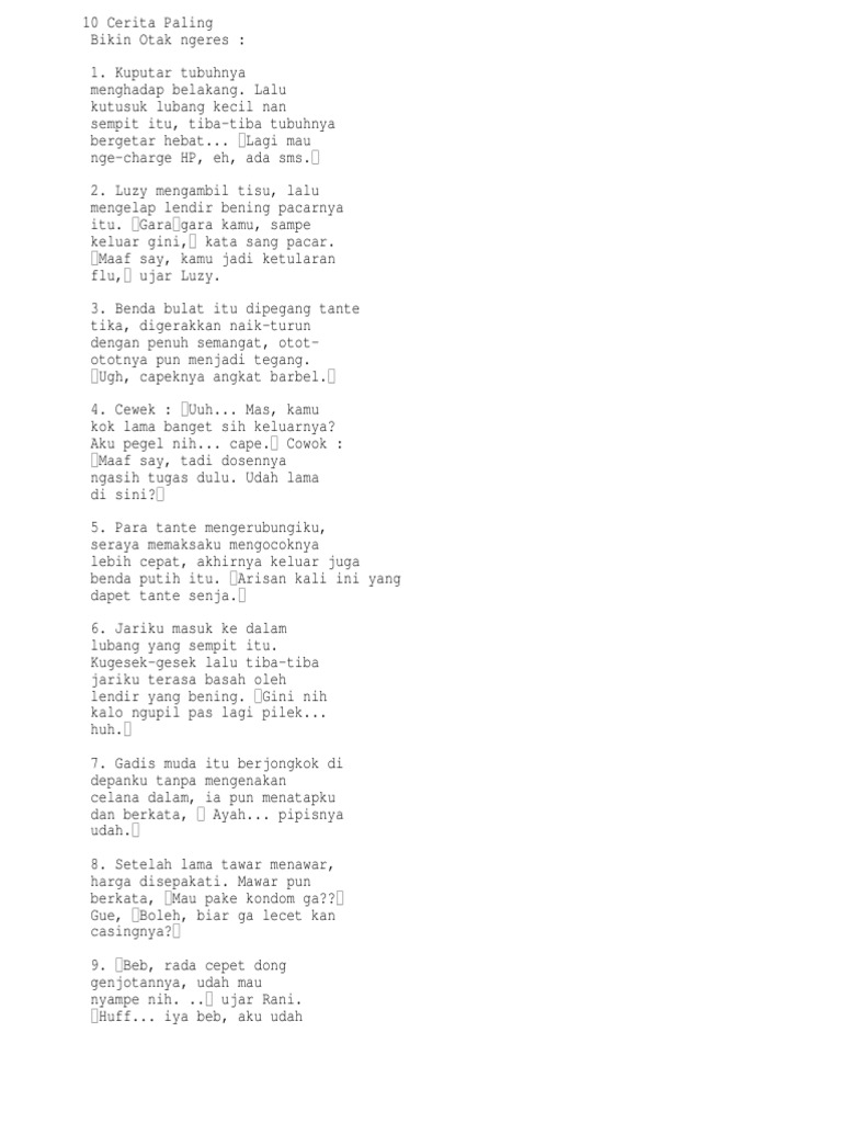 Tentunya cerita humor Ngeres paling lucu yang dipilih sudah lulus uji standar kelayakan ngakak dan konyol minimum yang disyaratkan oleh pemerintah. Bapak Emak dan Anak Keluar Bareng. 012000 30 Comments ATN - Seberapa ngeres kah anda.