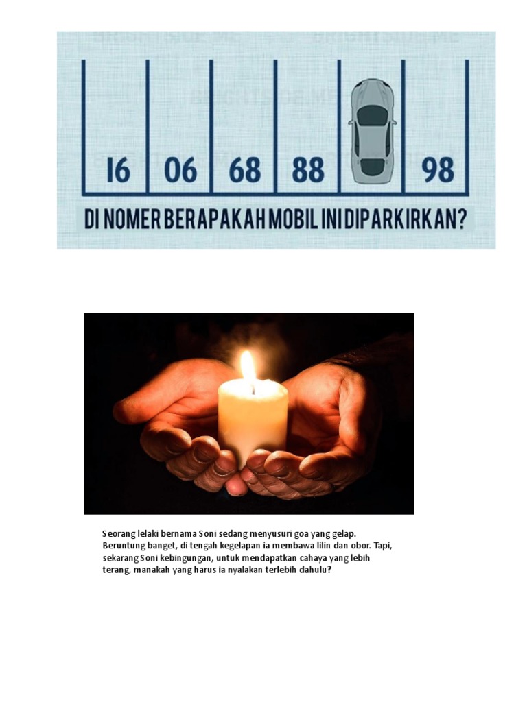 Jika ada lilin dan obor mana yang sebaiknya dinyalakan dulu agar lebih terang. Kami memiliki database lebih dari 122 ribu. Selain dapat menjadi salah satu bahan obrolan yang menarik untuk dibahas teka-teki logika juga memiliki manfaat lain yang sangat bermanfaat bagi otak kita.