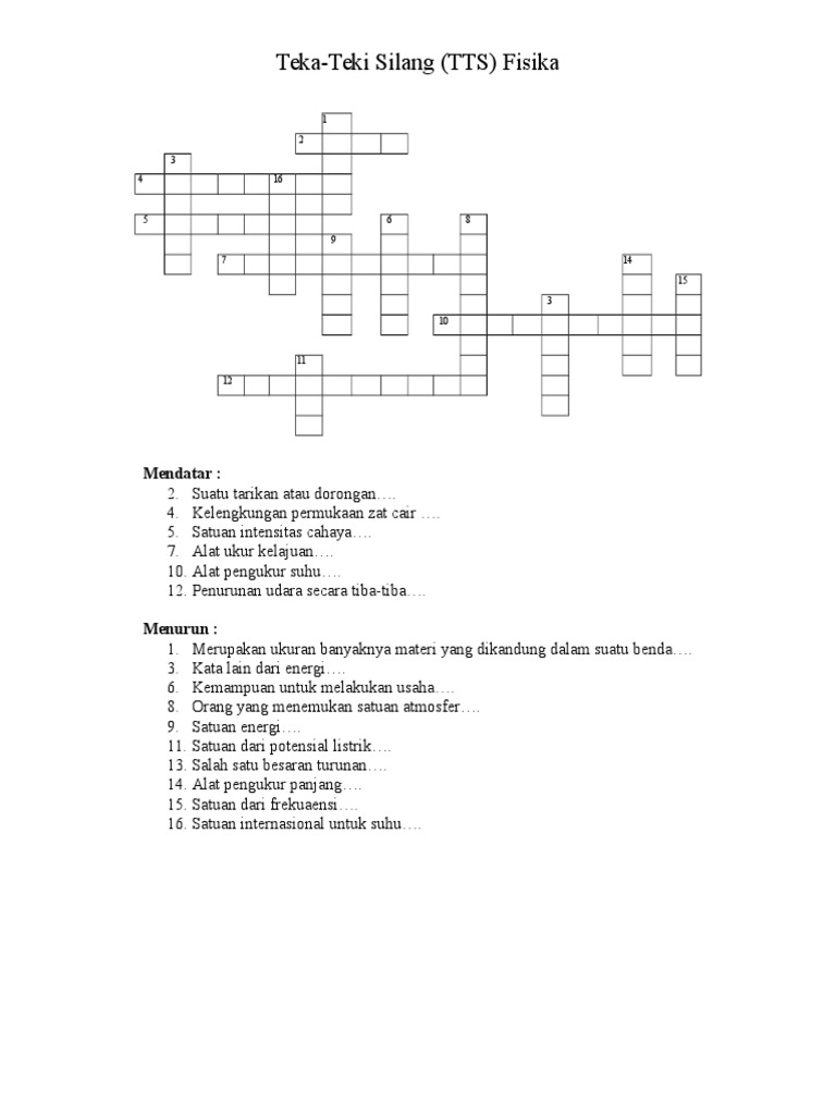 Tts fisika 1. Buku fisika sma kelas 10 kurikulum 2013 di Tokopedia Promo Pengguna Baru Cicilan 0 Kurir Instan. Teka teki silang tts untuk pembelajaran biologi kelas x wapik teka teki biologi belajar.