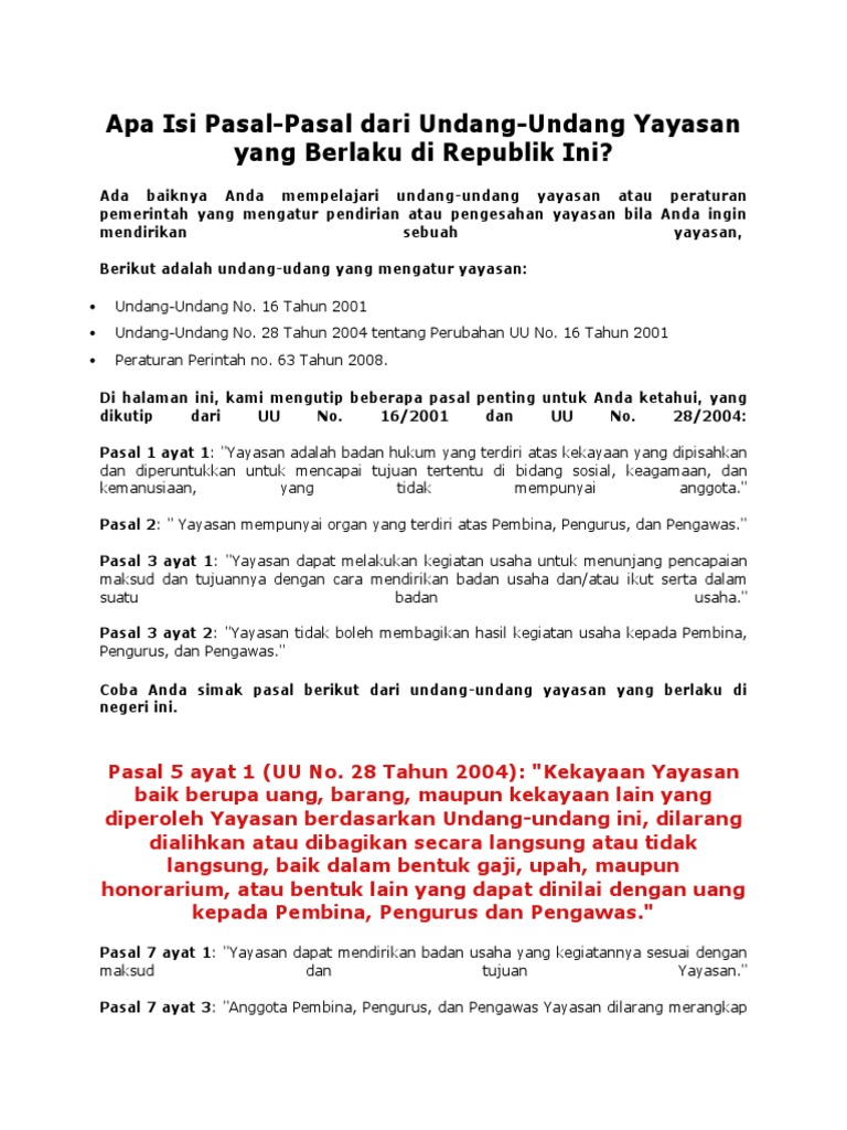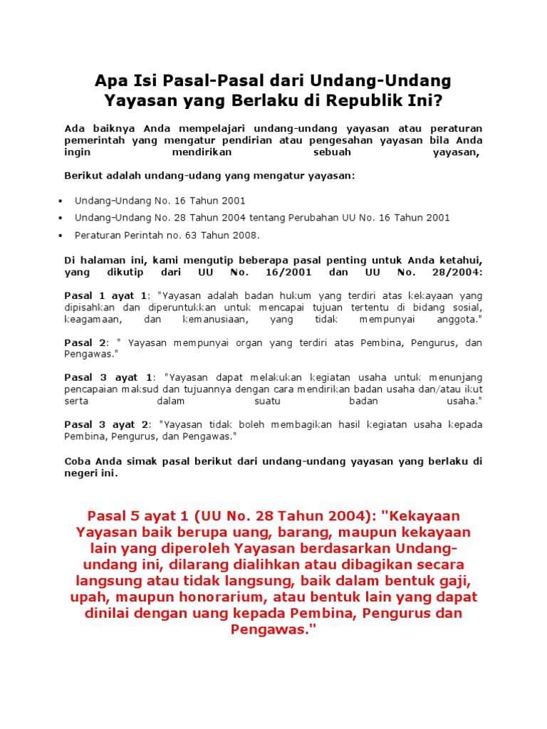 Undang Undang Nomor 16 Tahun 2001 Tentang Yayasan Pdf Berbagai Tahun