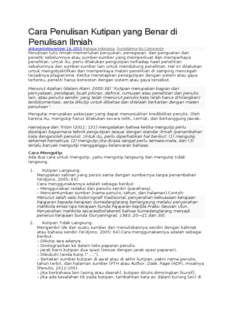Cara Penulisan Kutipan Yang Benar Di Penulisan Ilmiah