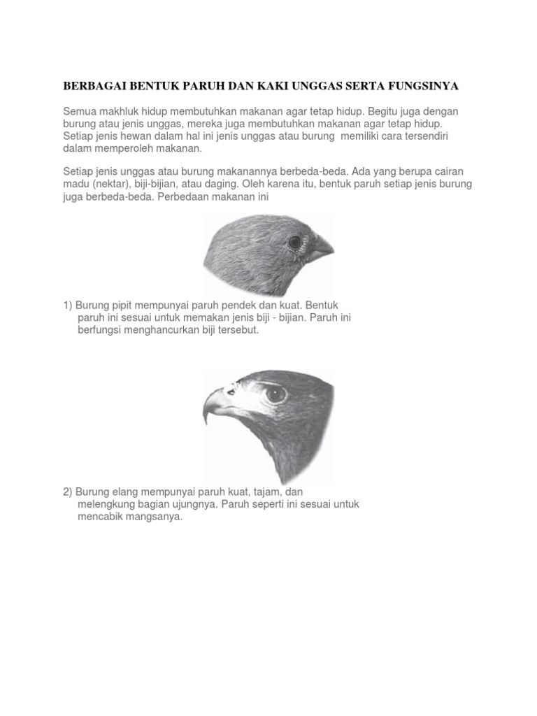Paruh paruh burung berfungsi untuk mengambil makanan. Halo kawan kawan semuanya kali ini saya akan membagikan informasi mengenai bentuk bentuk paruh dan kaki burung Paruh yang dimiliki setiap burung memiliki perbedaan antar satu dengan yang lainnya. Bentuklah kelompok bersama teman sekelasmu dengan jumlah 3 atau 4 orang 2.