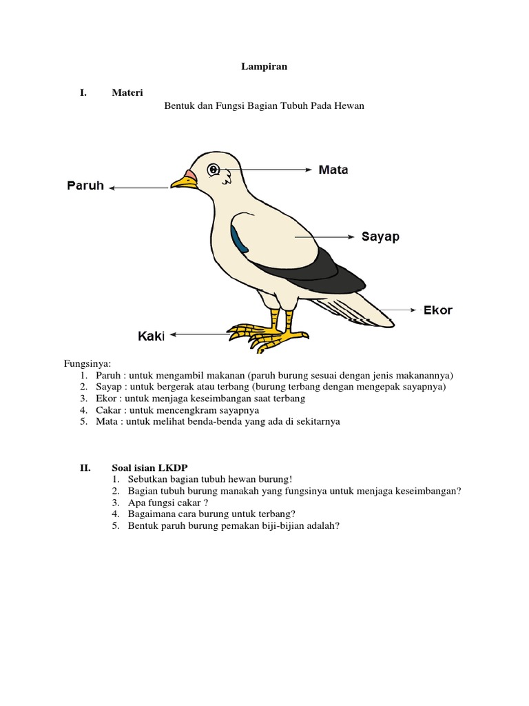 Paruh burung sesuai dengan jenis makanannya. Bagian Tubuh Burung dan Fungsinya Burung biasanya dipelihara karena suaranya yang merdu. Sayap sayap burung berfungsi untuk bergerak terbang.