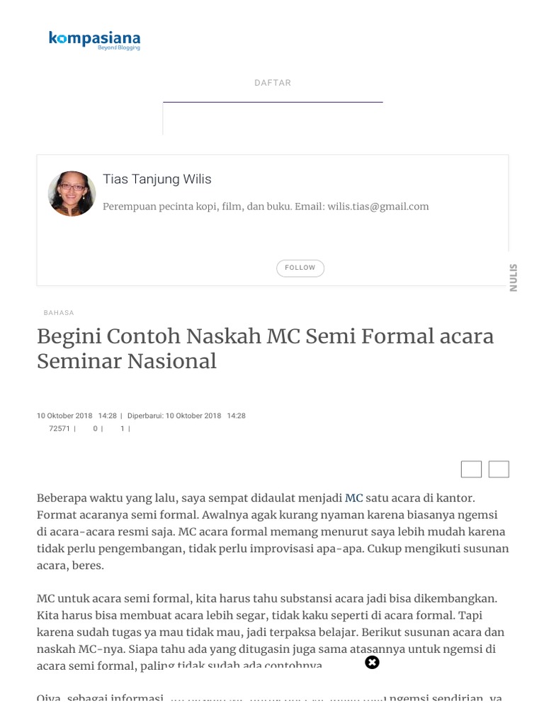 Begini Contoh Naskah Mc Semi Formal Acara Seminar Nasional Oleh Tias Tanjung Wilis Halaman 1 Pdf
