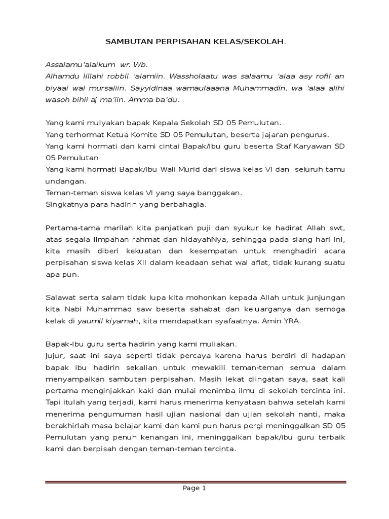 SUSUNAN ACARA PERPISAHAN Assalamualaikum wrwb Bissmillahirrohmanirohim Alhamdulilahirabbil alamin wasshalatu wasalamualaa asrafil anbiyai wal mursalin waalaa alihi waash-bihi ajmain amma badu. Contoh pidato singkat perpisahan kerja pindah tugas sambutan perpisahan. Contoh pidato perpisahan sekolah berbagai macam tema untuk tk sd smp sma wali murid mahasiswa pkl dll.