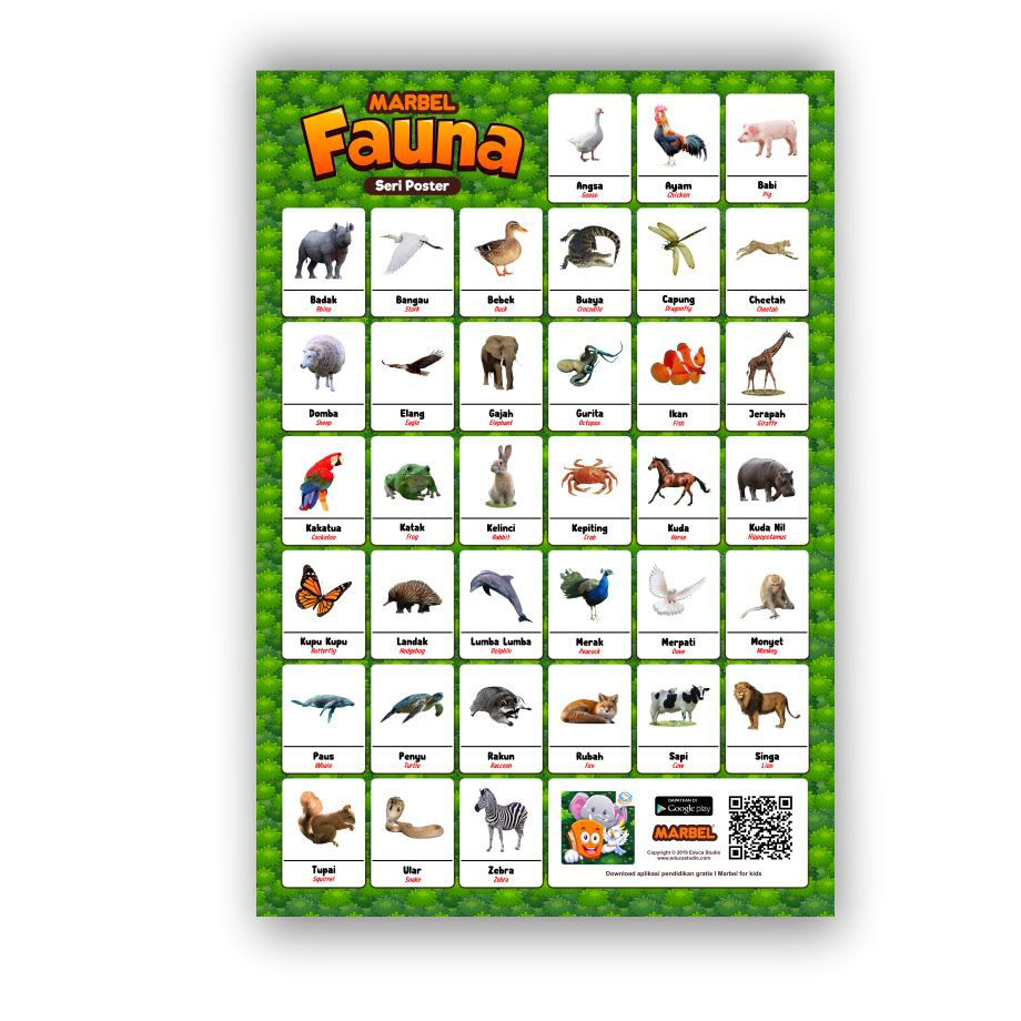 Poster Hewan Nama Hewan Alat Peraga Pendidikan Tk Sd 2 Bahasa Shopee Indonesia