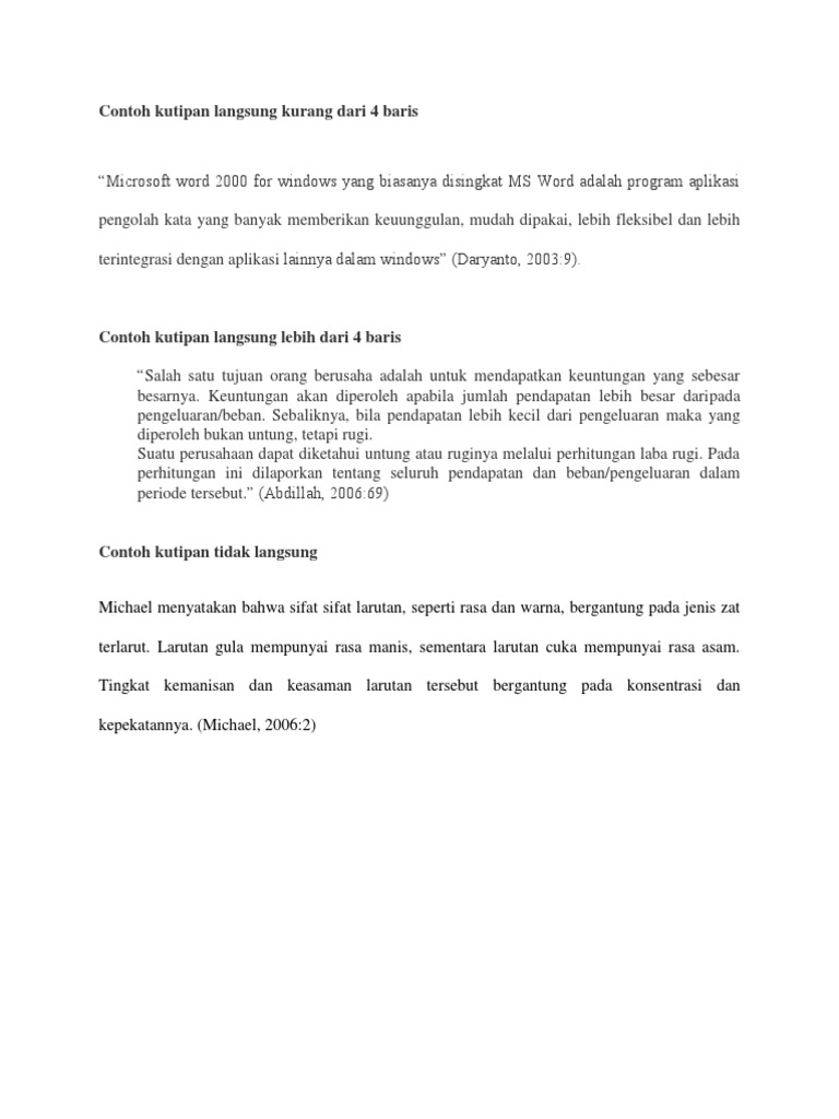 Contoh Kutipan Langsung Yang Lebih Dari 4 Baris Temukan Contoh