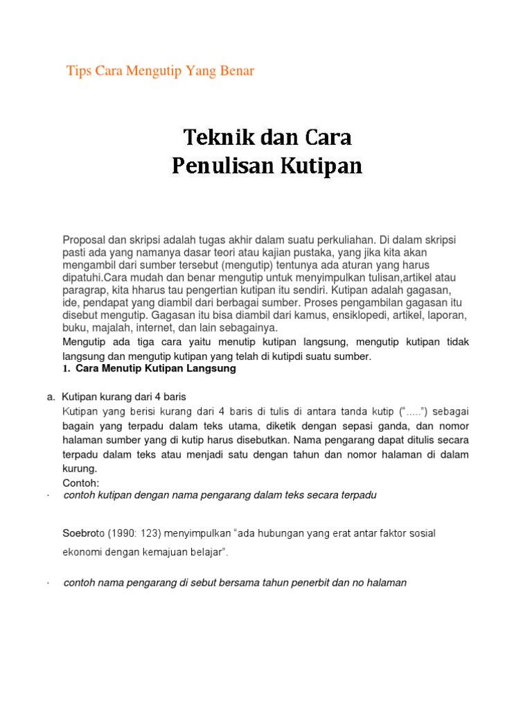 Cara Menulis Kutipan Langsung Dan Tidak Langsung Dari Buku Jurnal Dan Internet