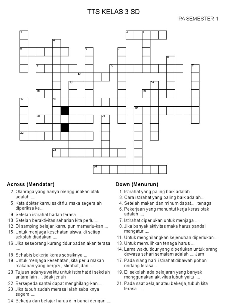 Soal teka teki silang tts ipa kelas 3 sd bab. With this update I created a better Overview for the Community which now displays the newest XWords as well as the most popular XWords of the week. Segala puji bagi Allah yang telah menciptakan hewan-hewan di darat dan di laut.