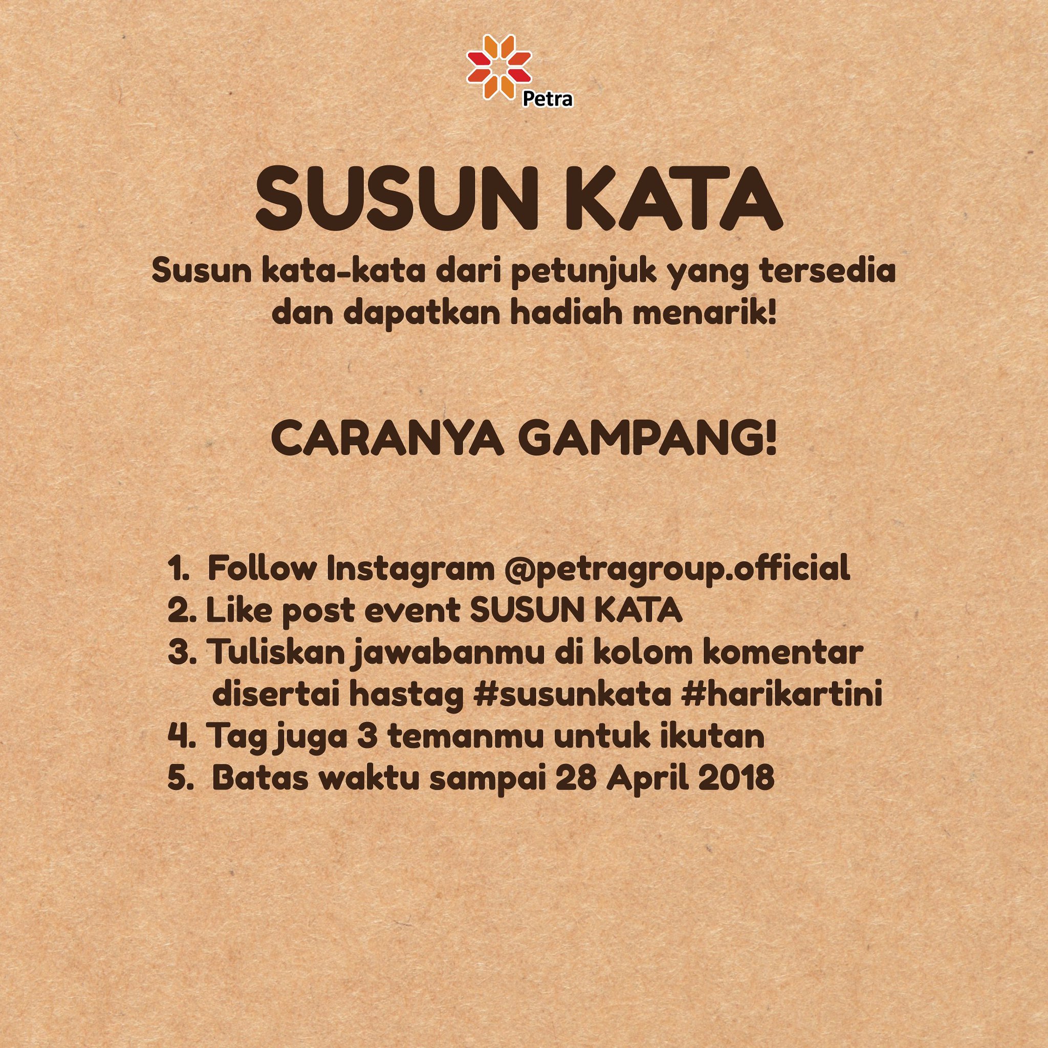 Petra Group En Twitter Jangan Lupa Ikutan Susunkata Di Instagram Petragroup Official Dan Raih Kesempatan Memenangkan Hadiah Menariknya Batas Waktunya Hanya Sampai Tanggal 28 April 2018 Susunkata Harikartini Giveaway Event Kuis Kuisberhadiah