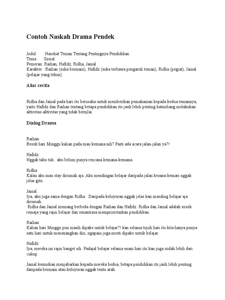 Contoh Teks Drama Singkat - Dalam sebuah pementasan apa yang akan dipentaskan oleh para pemain tentunya harus disusun secara sistematis dalam bentuk naskah begitupun dengan pementasan drama. 15 Contoh Teks Drama Lengkap cinderella islami cinta Teks Drama Lengkap Berbagai Tema Pementasan dalam sebuah drama baik di acara televisi maupun teater keduanya selalu menggunakan panduan yang berupa teks drama. Teks drama 1 babak Jenis drama.