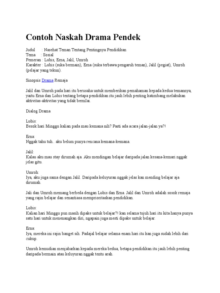 But do you know actually Sri often talk about your bad behavior. Naskah Drama Pendek ini dialognya sangat sedikit dan cocok untuk anda yang sedang dikejar untuk tugas sekolah atau tugas kuliah untuk mementaskan sebuah Drama dan Dalam. Contoh Teks Drama Komedi Singkat Terdapat 5 sekawan di sebuah sekolah yang bernama Joni Toni Tina Soni dan Jono.