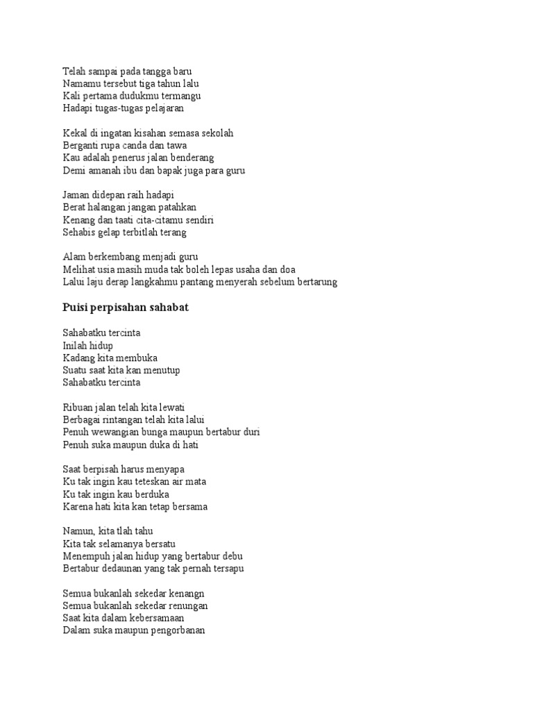 Doa Selepas Solat Rumi Menyentuh Hati. Ada banyak referensi puisi perpisahan yang bisa kamu kirimkan atau bacakan saat berpisah dengan orang-orang terdekat.