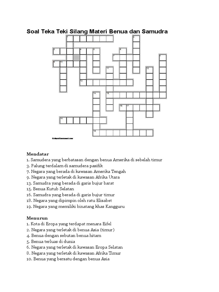 Soal Teka Teki Silang Materi Benua Dan Samudra Pdf