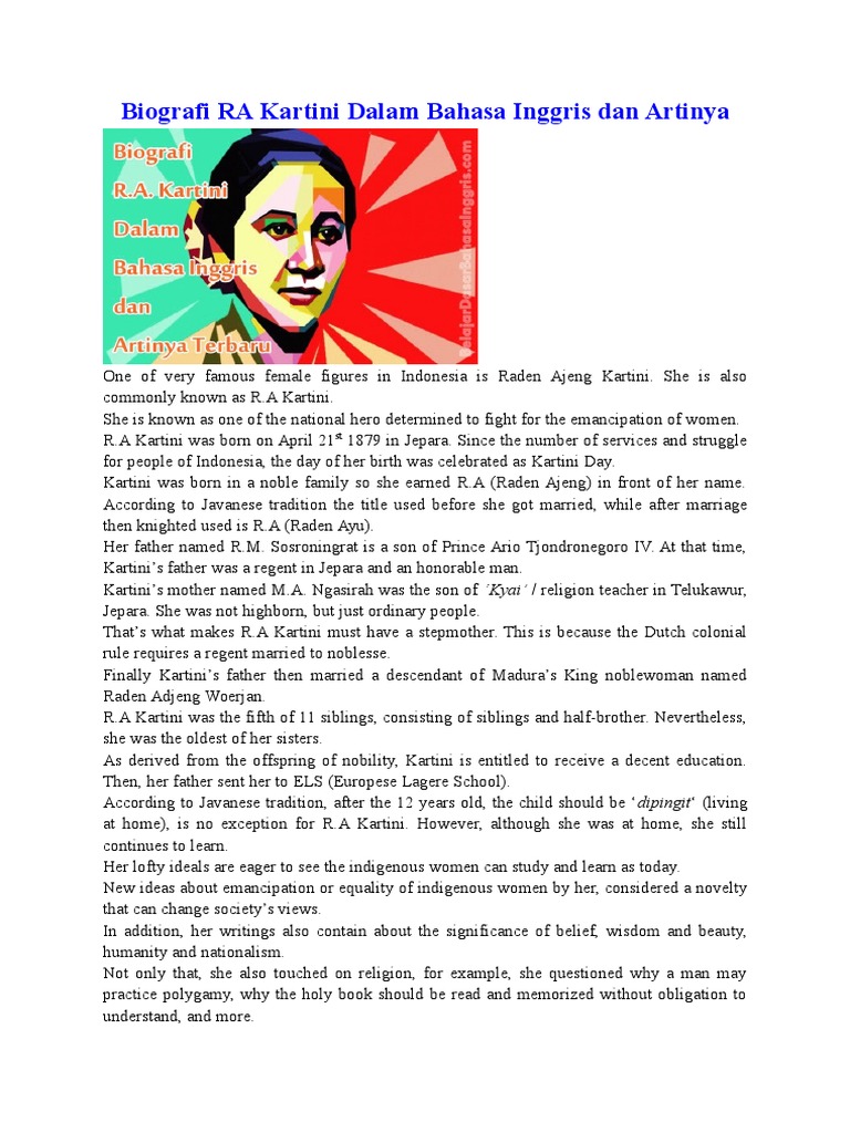 Biografi Ra Kartini Dalam Bahasa Inggris Dan Artinya Indonesian People Indonesia
