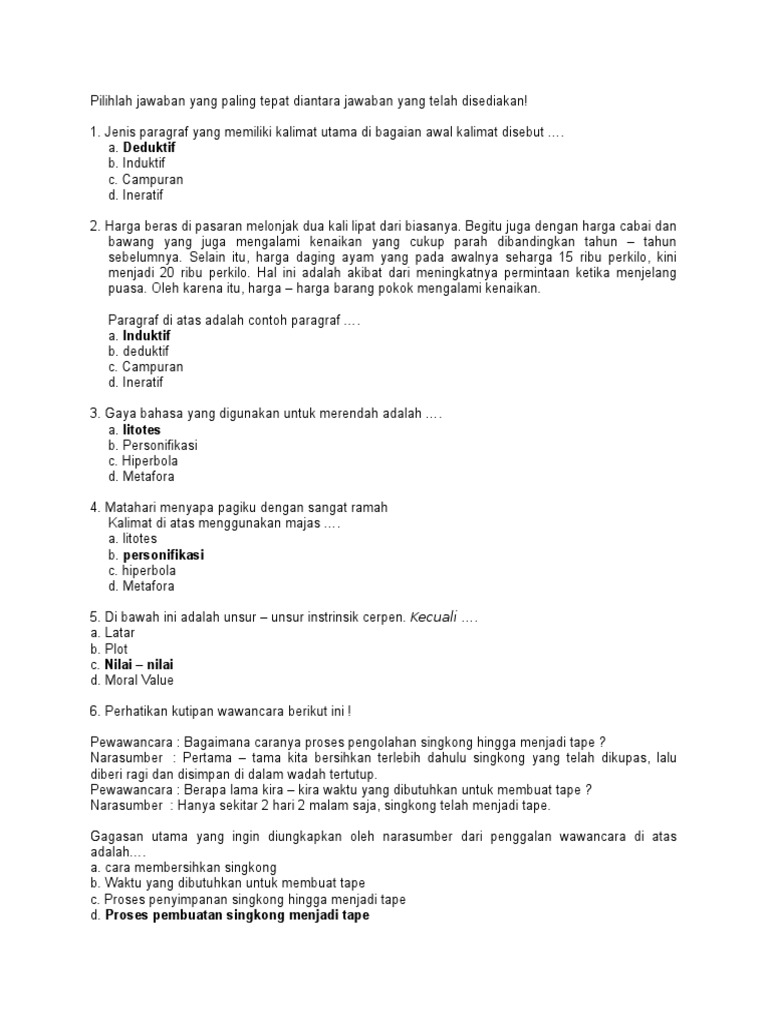 Pilihlah Jawaban Yang Paling Tepat Diantara Jawaban Yang Telah Disediakan