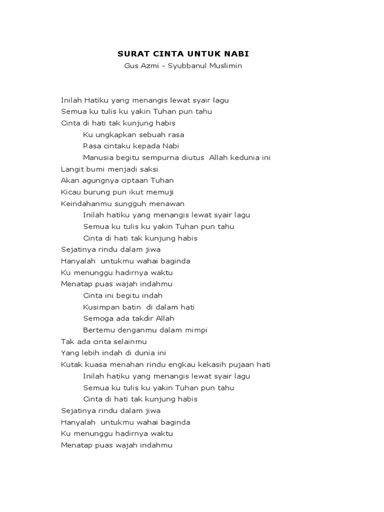 Lirik Surat Cinta Utk Nabi Dan Ya Nabi