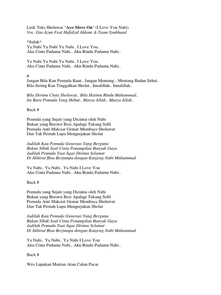 2x Kekasih Kita Nabi Muhammad. Lirik Lagu Sholawat Syuhbanul Muslimin-Gus Azmi New April 05 2019 Posting Komentar Lirik Lagu Ayo Move On. Datanglah Wahai Sang.