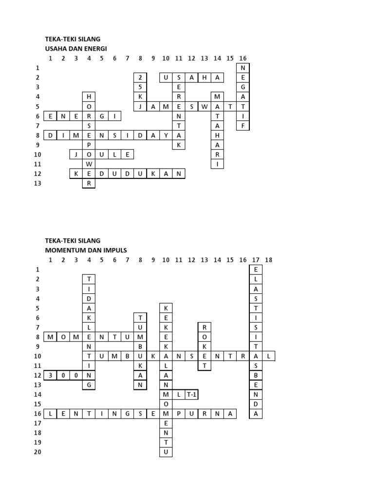 Buatlah Teka Teki Silang Fisika Tentang Momentum Dan Impuls Brainly Co Id