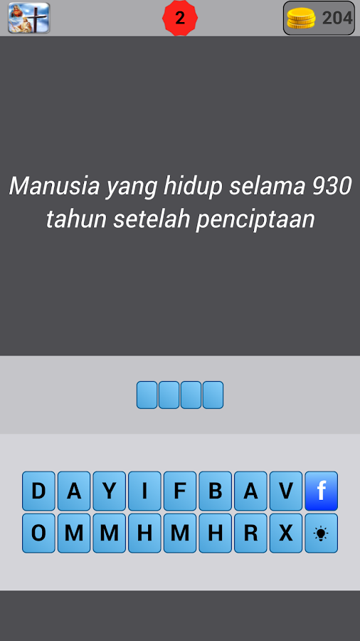 This game is very easy to play. You only need to answer the questions with the answers to the names of the characters in the Bible. Of course, this game is also equipped with hints and a … 6