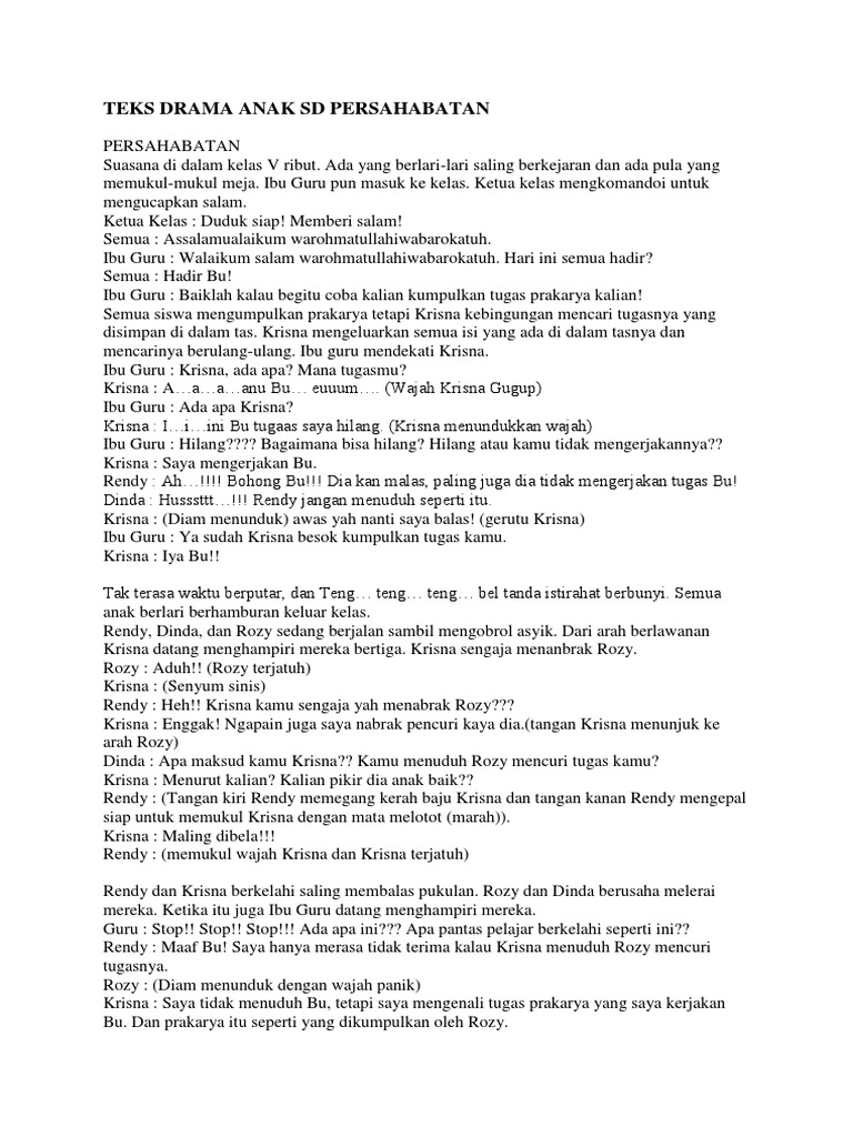 Ideal Skenario Ketoprak 5 Orang. Judul: Motivasi Teman. Alur: Pendek (baca: contoh naskah sandiwara pendek) Total pemeran: 5 Basyar (baca: naskah sandiwara bahasa Inggris untuk 5 orang) Karakter: Ryan: menyambat karena nilai … 2