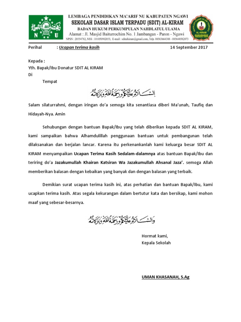 Surat Ucapan Terima Kasih 20