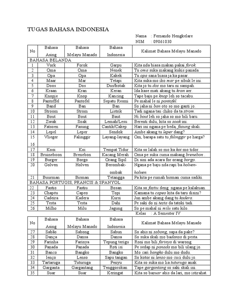 Kata-Kata Serapan Dalam Bahasa Manado 28