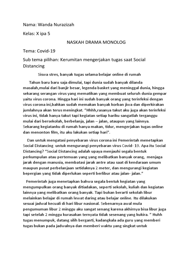 Contoh Cerita Monolog / Drama Monolog Virus Corona Xi Ips 2 Dita Dara Dinanti Youtube 16