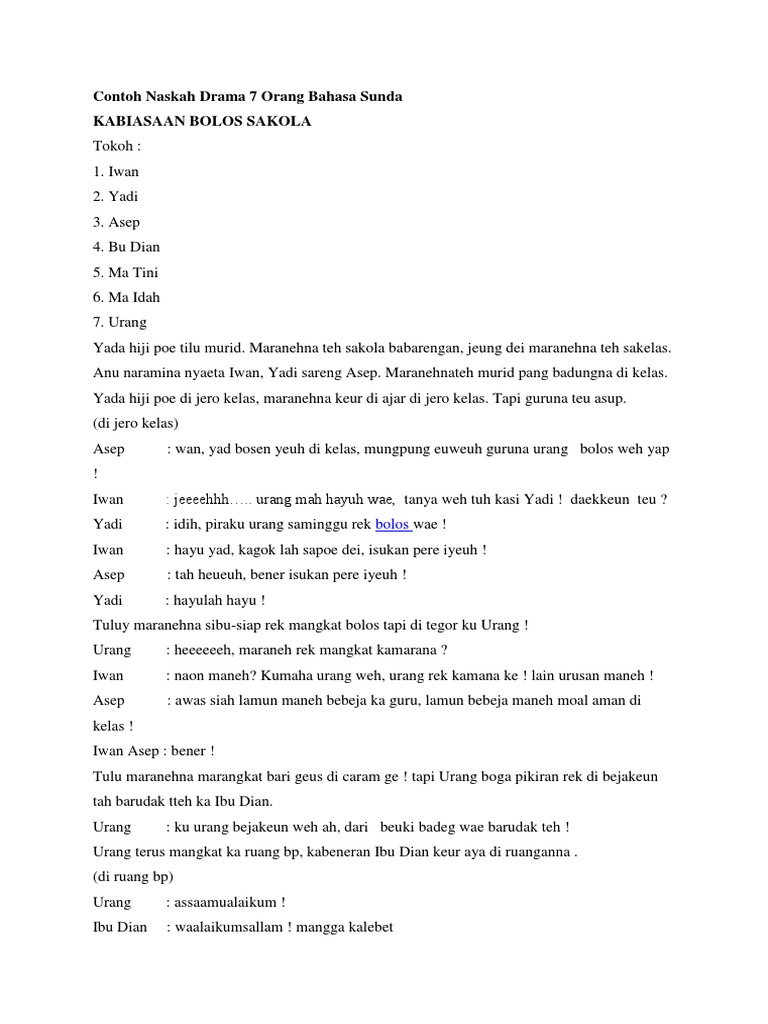 Contoh Naskah Drama 7 Orang Bahasa Sunda Kabiasaan Bolos – Bila Rasa 28