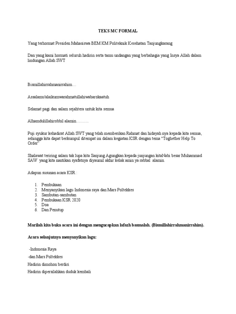 Contoh Teks Mc Formal Pdf Terbaik - Kumpulan Contoh Teks MC 18