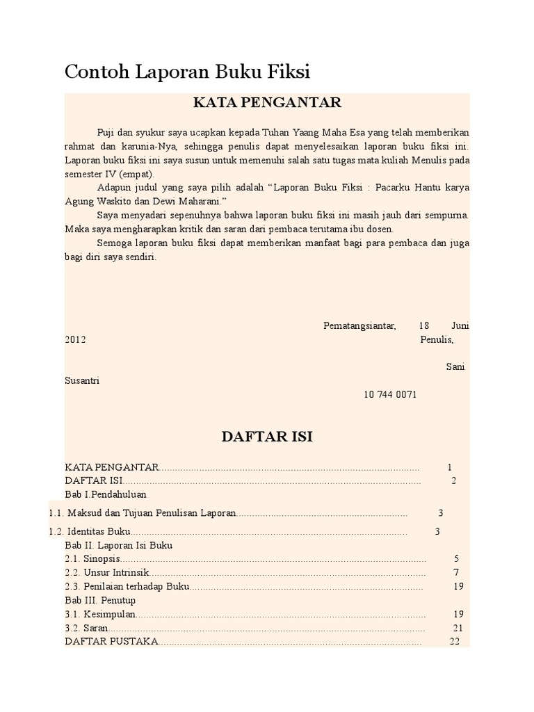 Contoh Laporan Buku Fiksi Dan Non Fiksi - Barisan Contoh 4