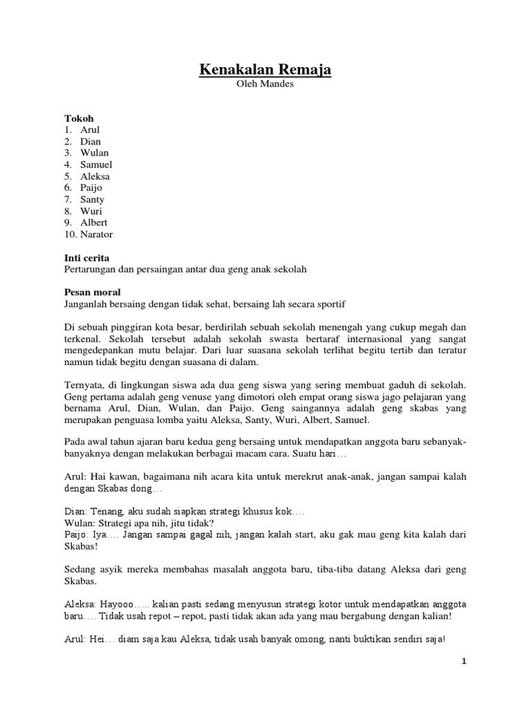 Naskah Drama 5 Orang Tentang Kenakalan Remaja - Berkas Sekolah 22