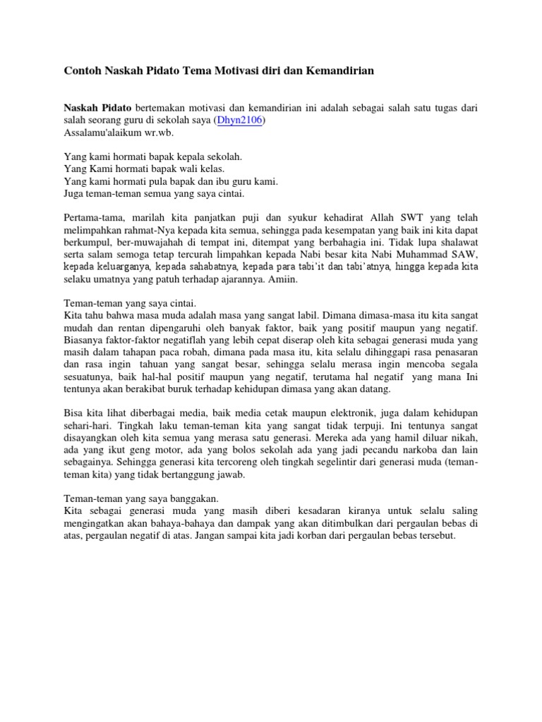 Contoh Naskah Pidato Tema Motivasi Diri Dan Kemandirian 3