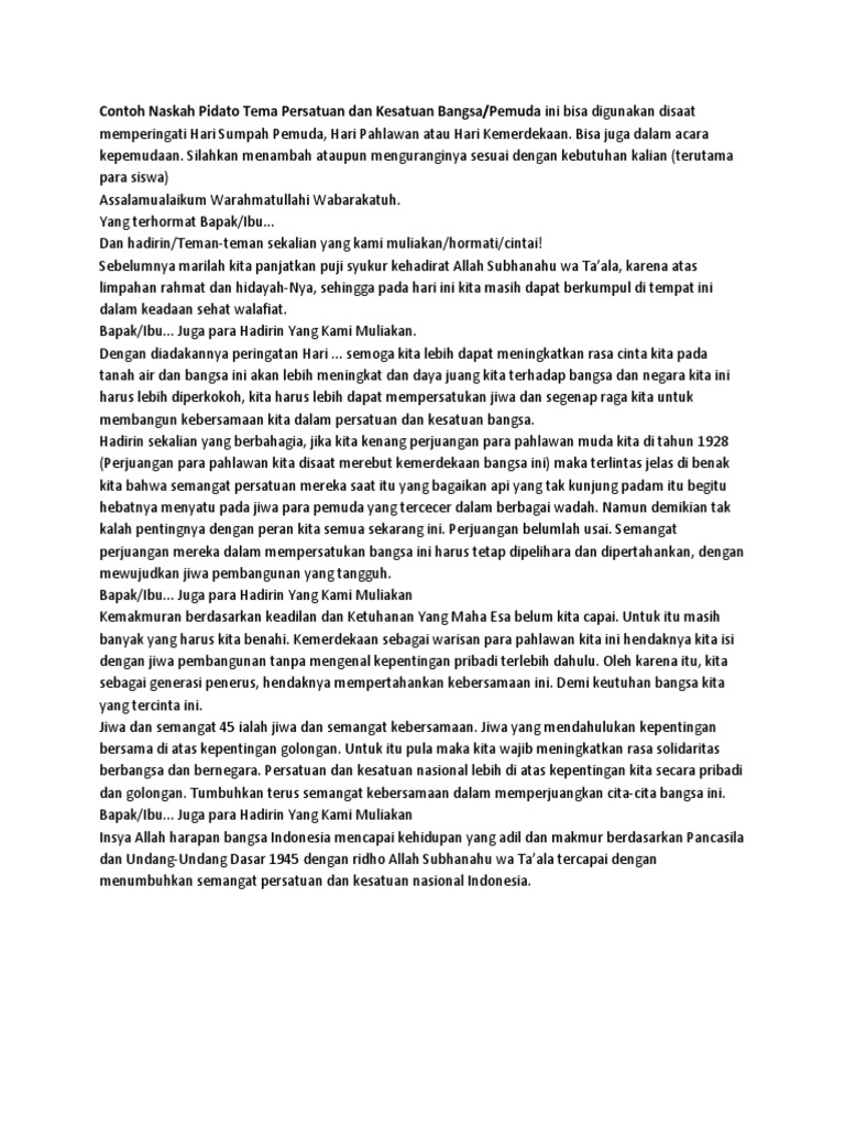 Contoh Naskah Pidato Tema Persatuan Dan Kesatuan Bangsa | PDF 33