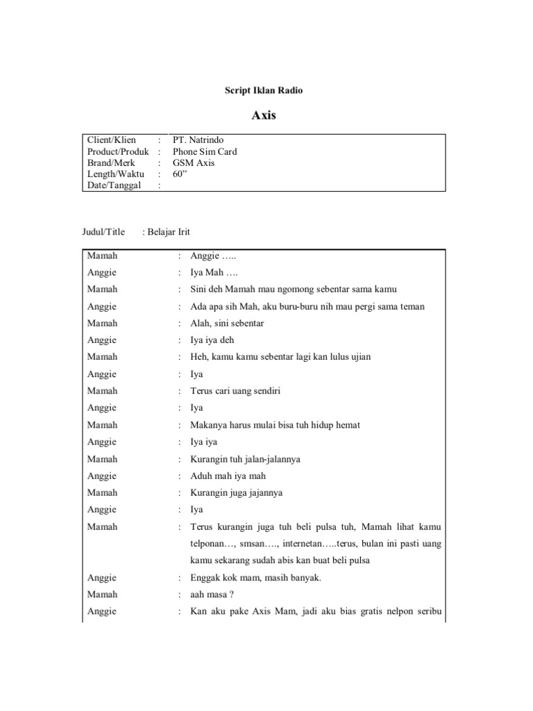Contoh Script Iklan Produk Di Radio - Contoh Kono 15