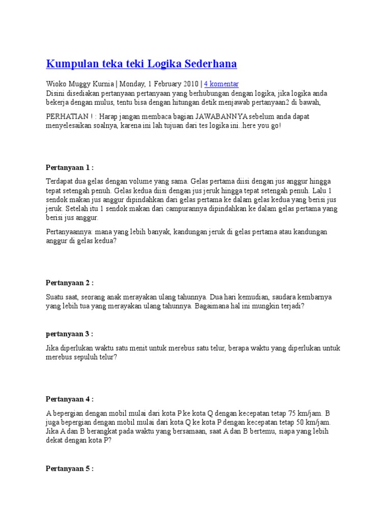 Tes Iq Dan Teka Teki Sulit Teka Teki Lengkap 34