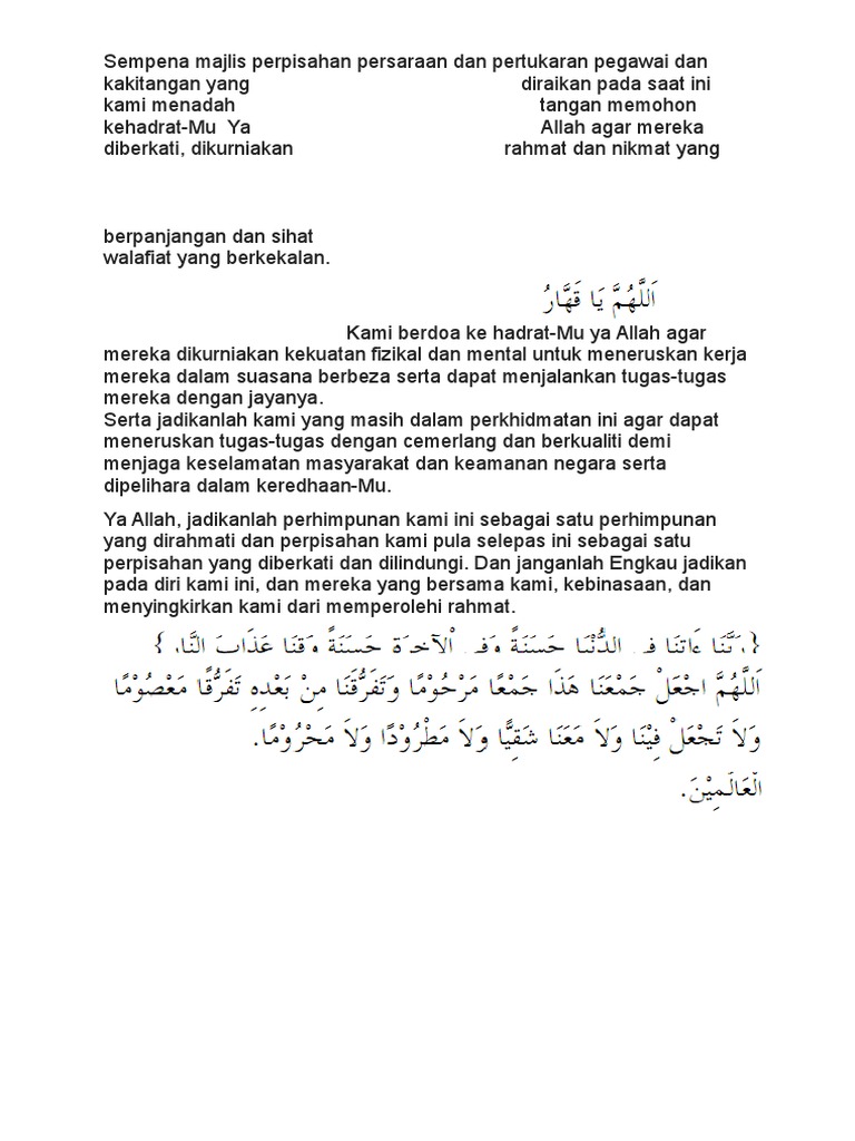 Koleksi Doa Di Majlis-Majlis Rasmi Dan Separuh Rasmi Kerajaan: DOA PERPISAHAN PEGAWAI DAN KAKITANGAN 28