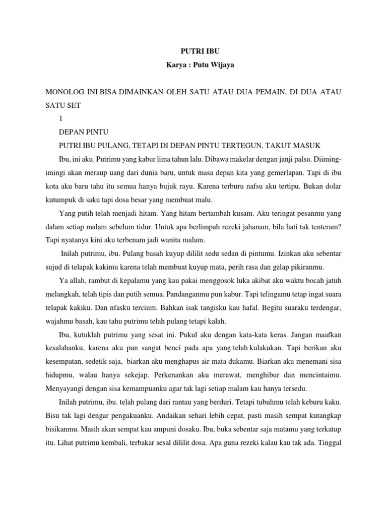 Naskah Monolog Putri Ibu Putu Wijaya 4
