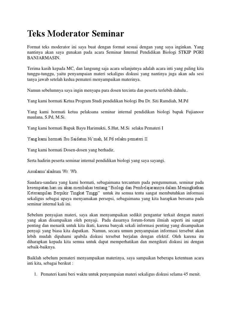 Contoh Teks Moderator Seminar - Format Soal 34