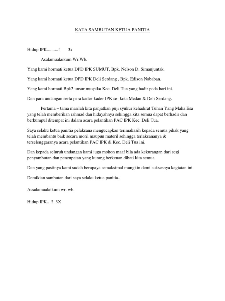 Contoh Kata Sambutan Ketua Panitia Pemungutan Suara - Temukan Contoh 31