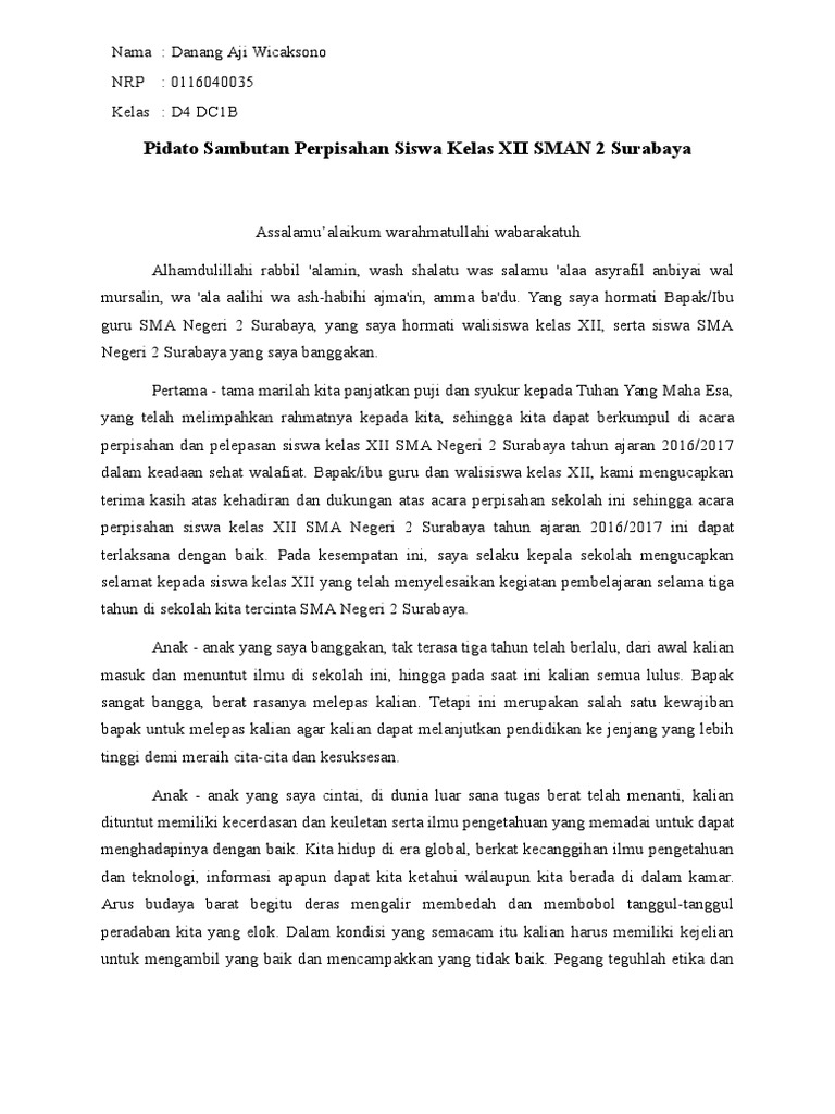 Contoh Pidato Perpisahan Siswa Kelas Xii - Tuts Trace 25
