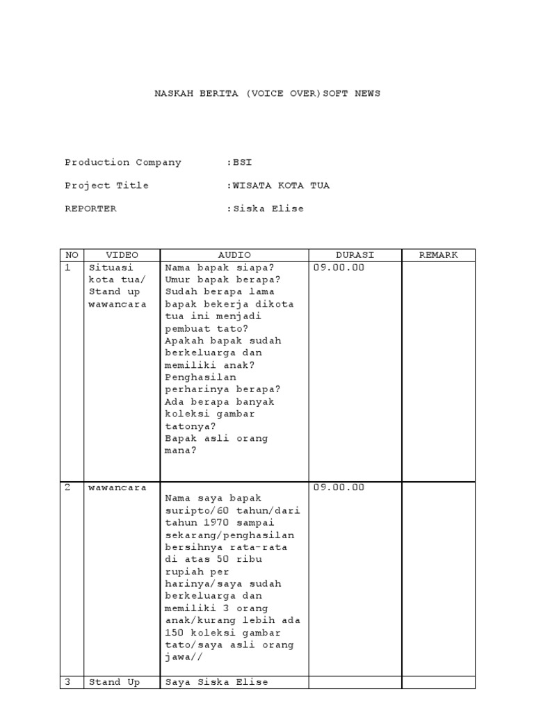 Contoh Naskah Reporter Singkat - Contoh Resource 22