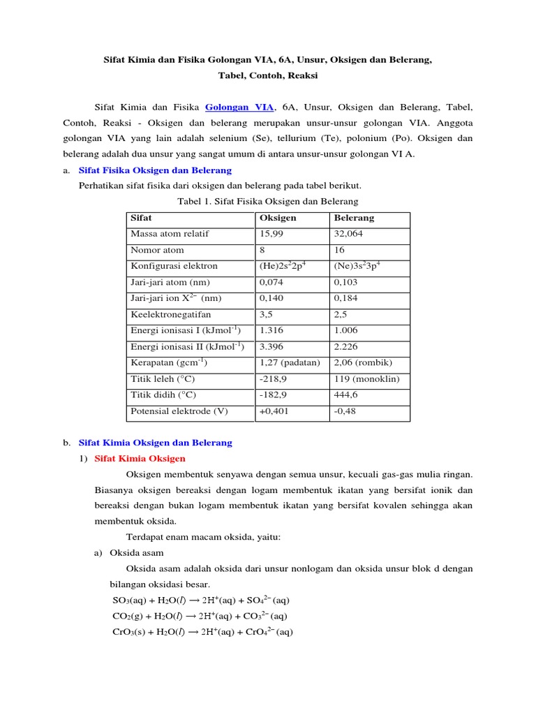 Sifat Kimia Dan Fisika Golongan Via 16