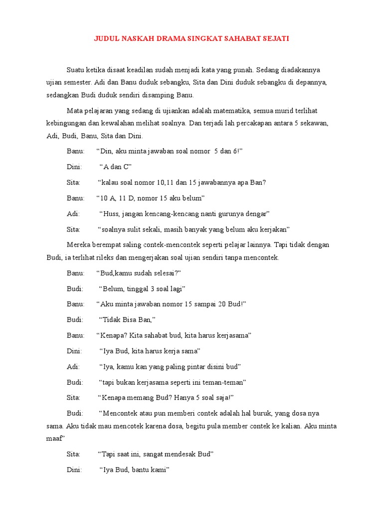 Contoh Skrip Drama Pendek / Contoh naskah drama pendek dimainkan 6 orang. - jiwansti 19