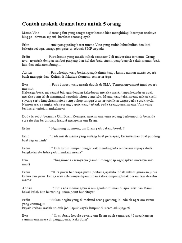 Drama Bahasa Jawa 2 Orang Singkat - 7 Contoh Teks Naskah Drama Pendek Persahabatan 5 6 7 Orang 27