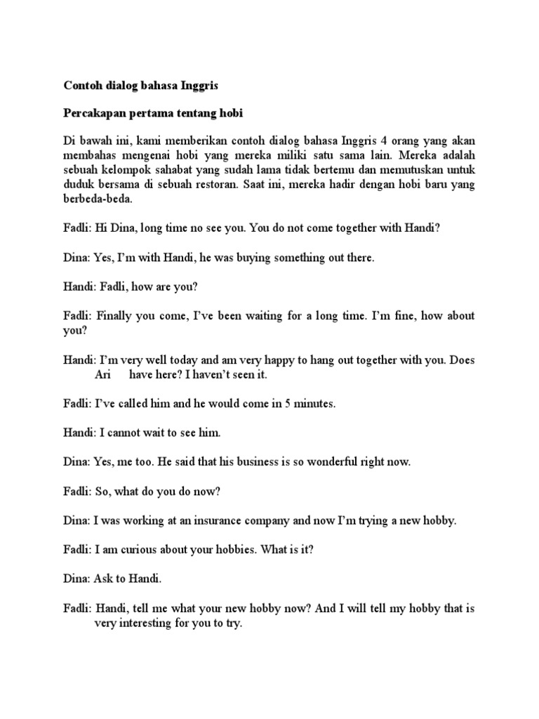 Contoh Dialog Bahasa Inggris 4 Orang Tentang Hobi | PDF | Leisure 1