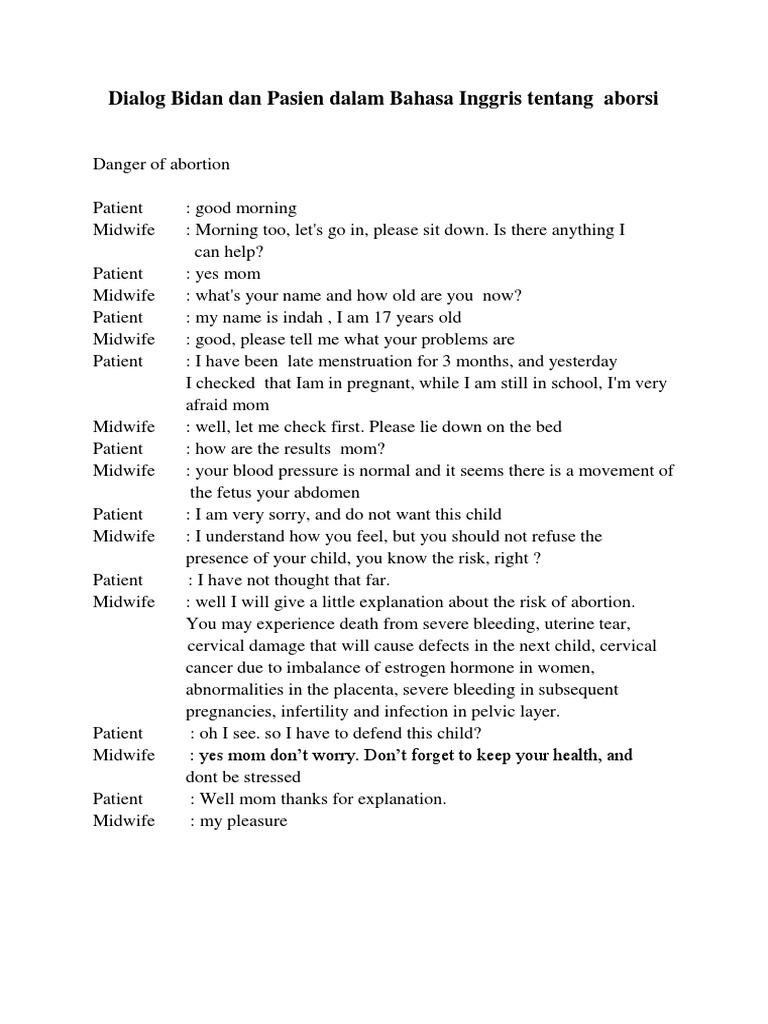 Dialog Bidan Dan Pasien Dalam Bahasa Inggris Tentang Aborsi 15